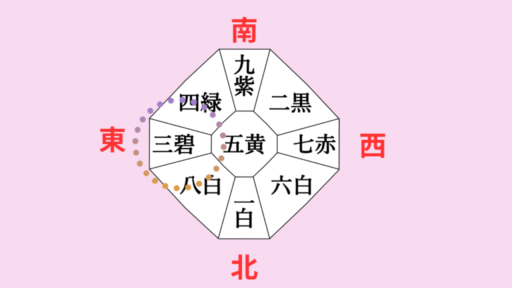 九星気学で用いる後天常位盤では、東は向かって左に位置します。